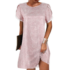 • Product Name: Casual Dress 2022 summer round neck short sleeve loose lace edge ladies floral dress