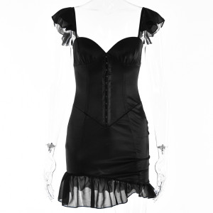• Product Name: Fashion women dress Sexy Backless Lotus Leaf Skirt off Neck Low Cut Sling Dress Autumn New