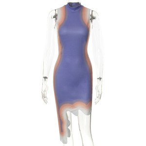 Women'S Round Neck Gradient Print Sleeveless Irregular Hem Dress